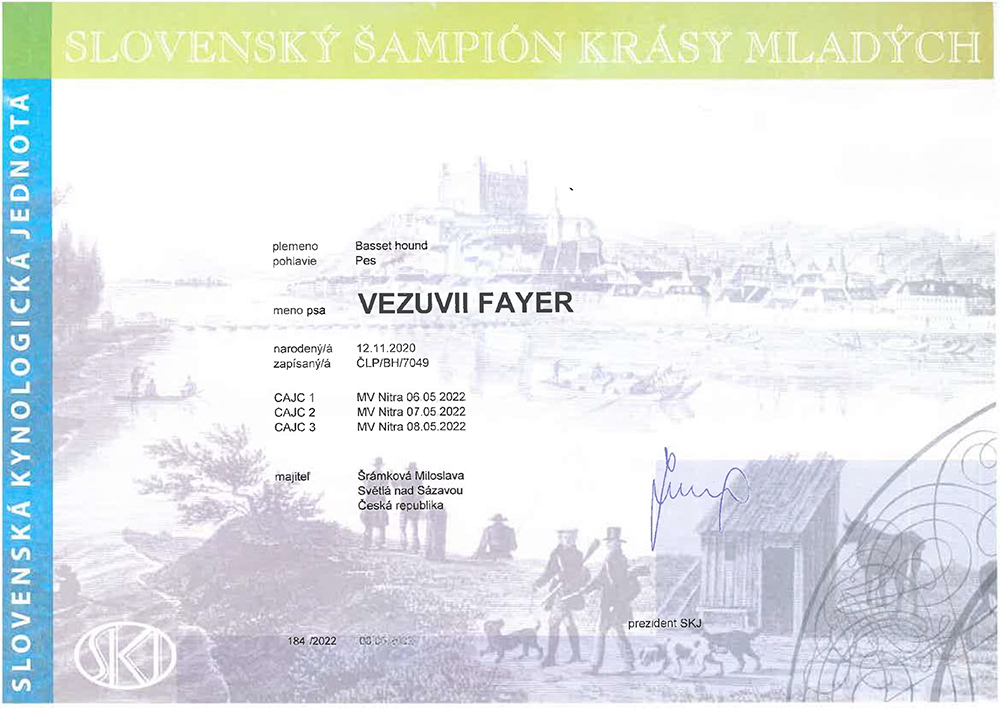 Frája splnil podmínky na udělí SLOVENSKÝ ŠAMPION KRÁSY MLADÝCH.